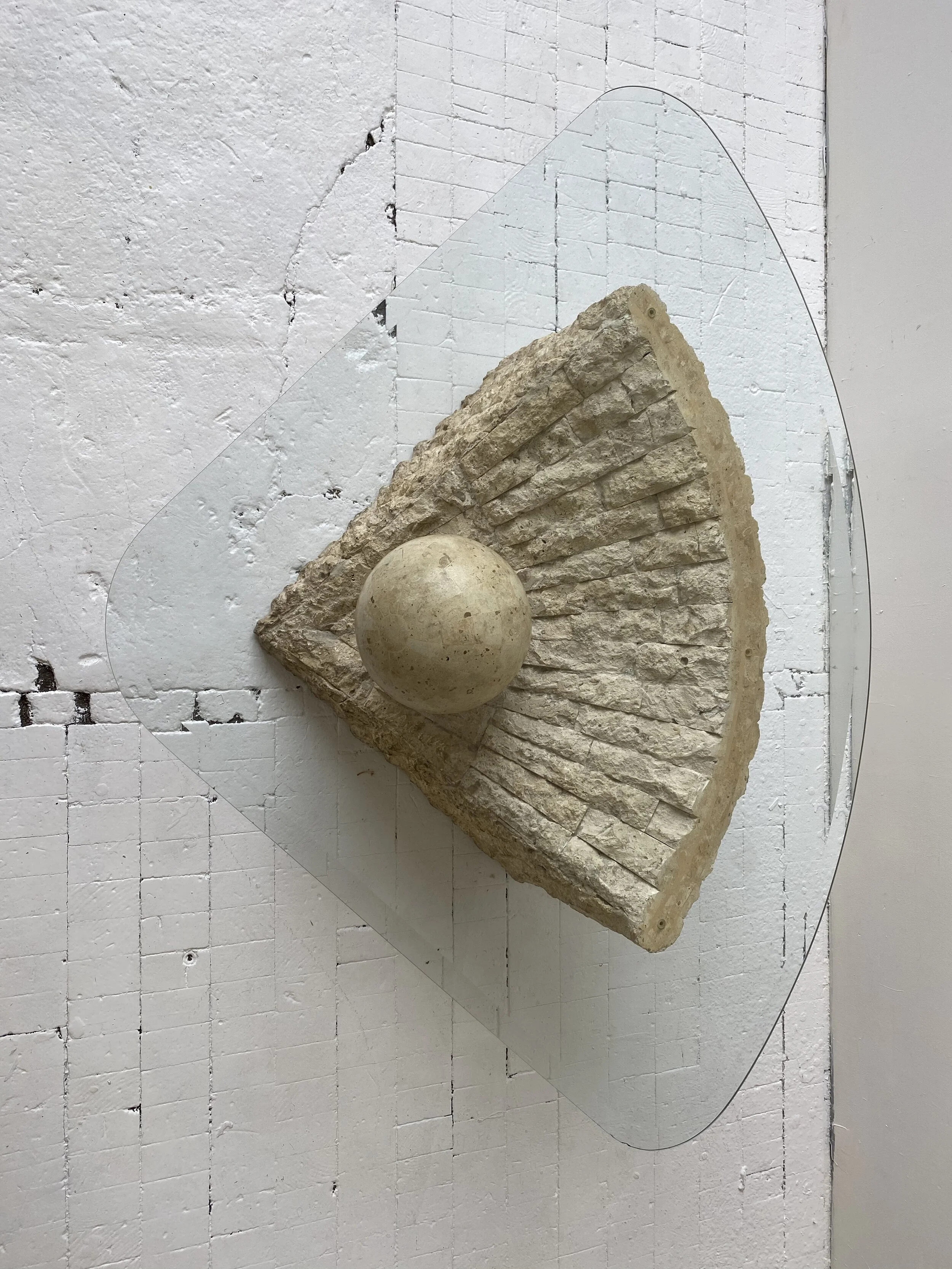 Postmodern Glass Top Tessellated Beige And Pink Stone Coffee And Side Table Set For Sale At 1stdibs